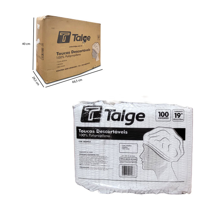 TOUCA TNT TALGE DESCARTAVEIS (1086) / CAIXA COM 50 PT DE 100 UN CADA