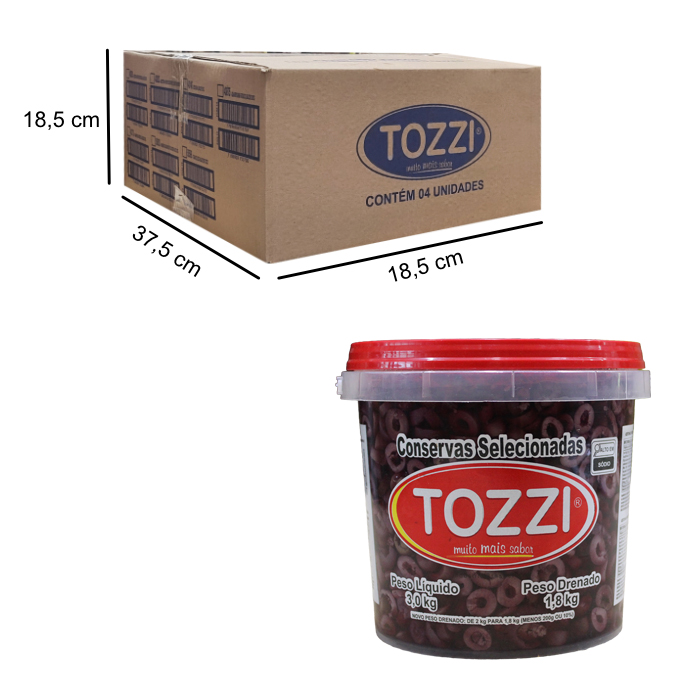 AZEITONA PRETA FATIADA TOZZI / CAIXA COM 4 BD DE 1,8 KG CADA