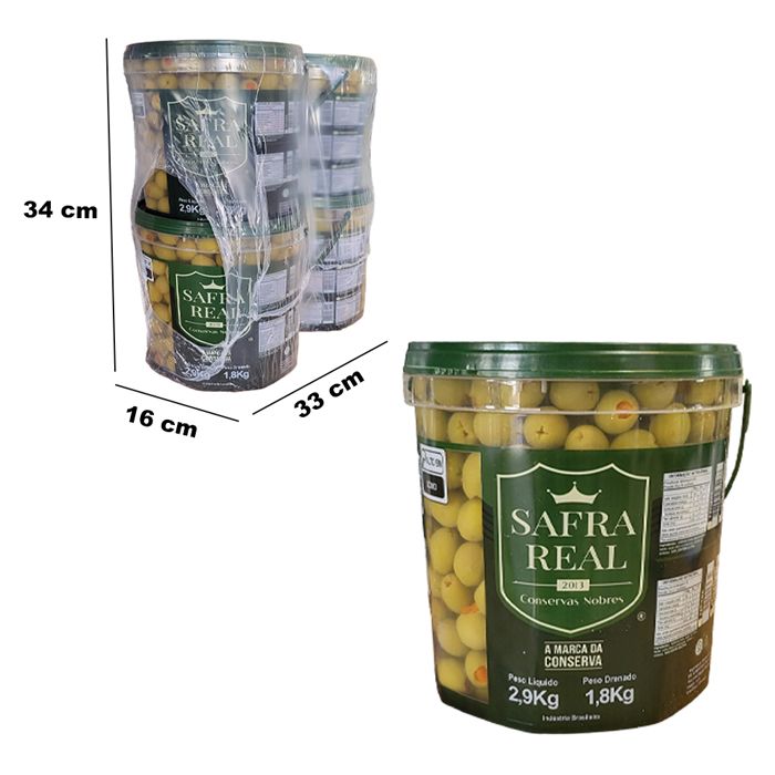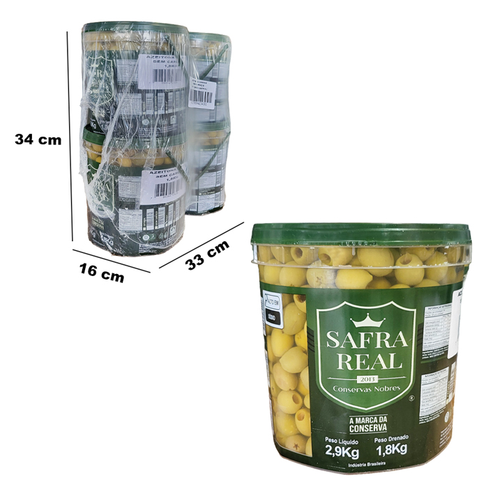 AZEITONA VERDE RECHEADA SAFRA REAL / CAIXA COM 4 BD DE 1,8 KG CADA