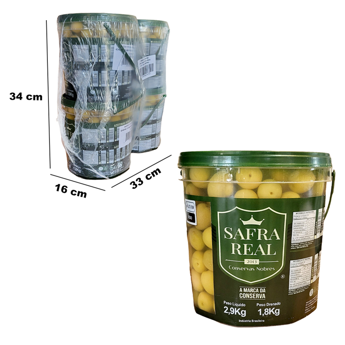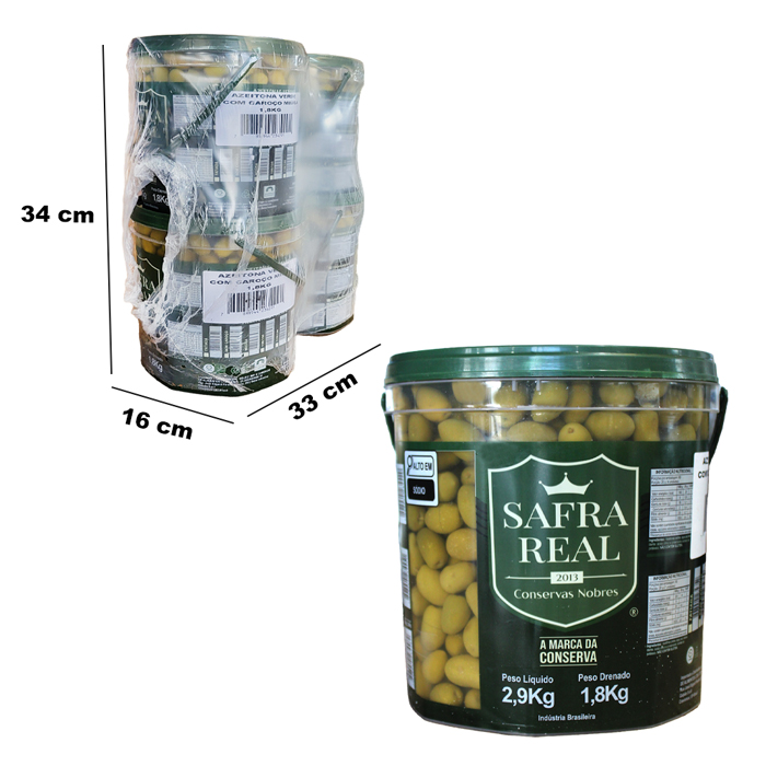 AZEITONA VERDE MIUDA 28/32 SAFRA REAL / CAIXA COM 4 BD DE 1,8 KG CADA