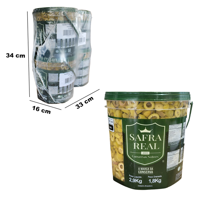 AZEITONA VERDE FATIADA SAFRA REAL / CAIXA COM 4 BD DE 1,8 KG CADA