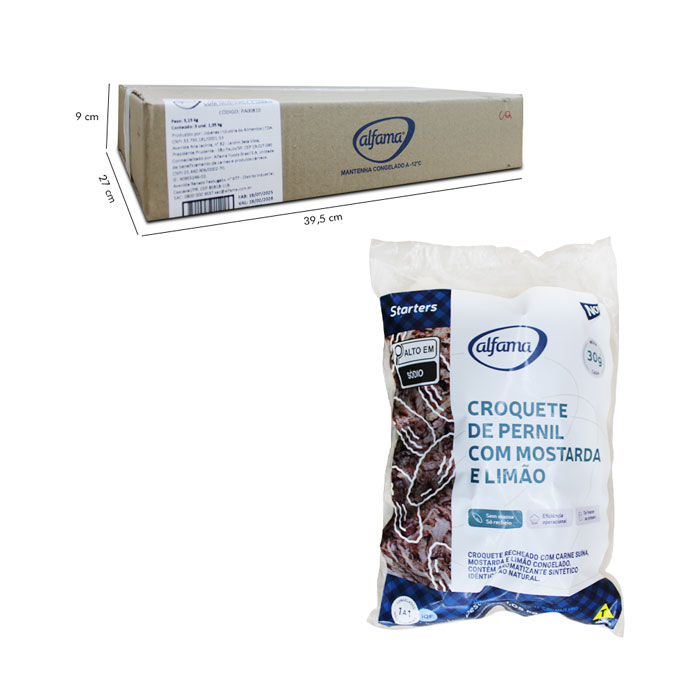 ALFAMA CROQUETE DE PERNIL C/ MOSTARDA E LIMAO / CAIXA COM 3 PT DE 1,05 KG CADA