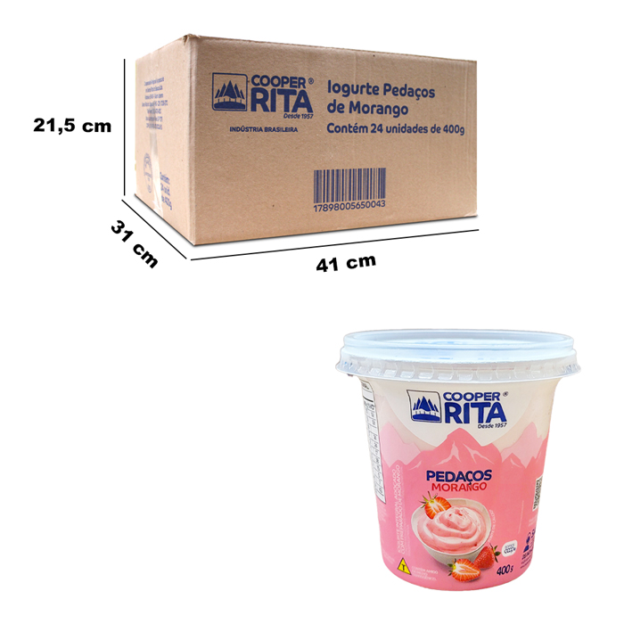 IOGURTE INTEGRAL COM PEDACOS DE MORANGO COOPERRITA / CAIXA COM 24 UN DE 400 G CADA