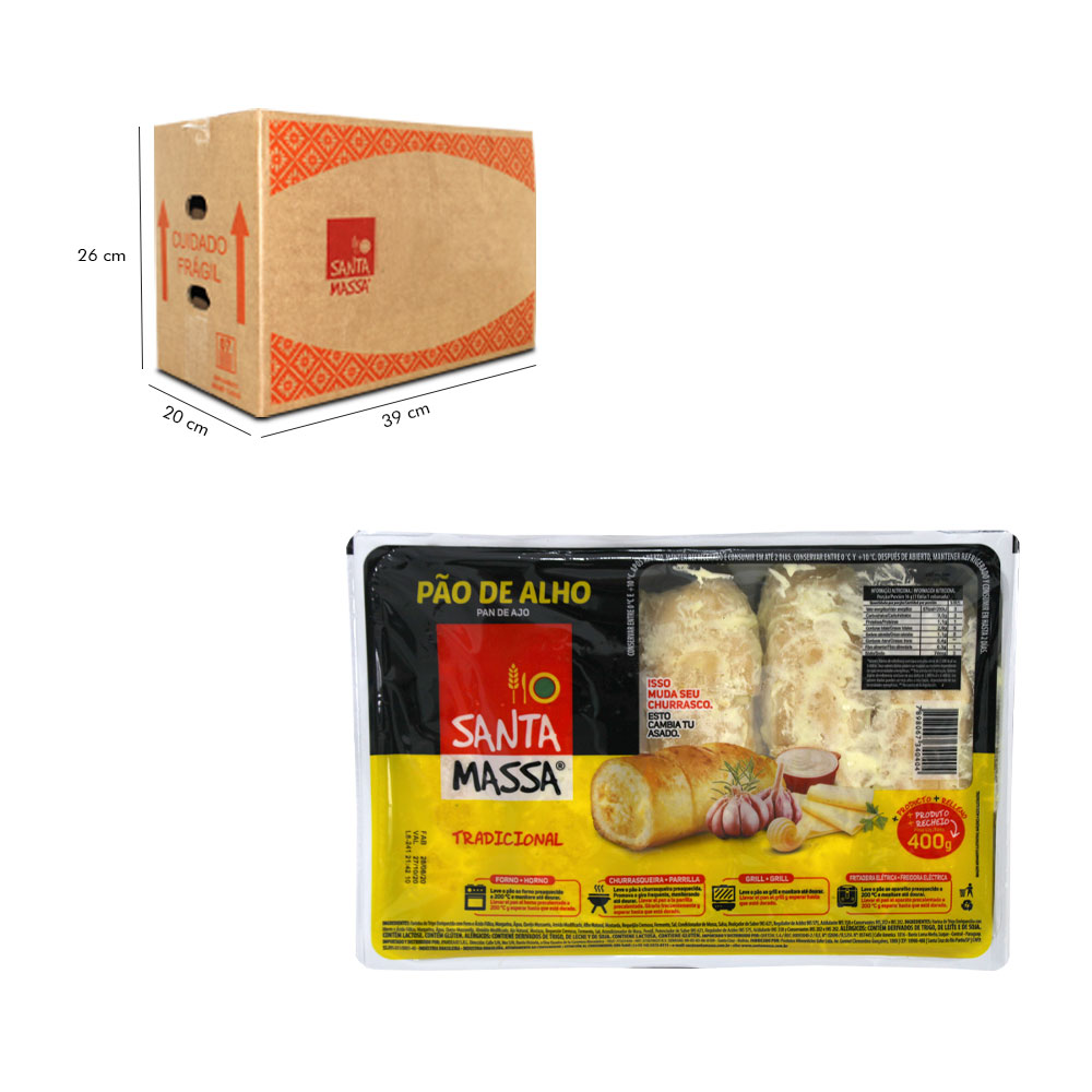 PAO DE ALHO TRADICIONAL SANTA MASSA / CAIXA COM 10 BANDEJAS DE 400G CADA