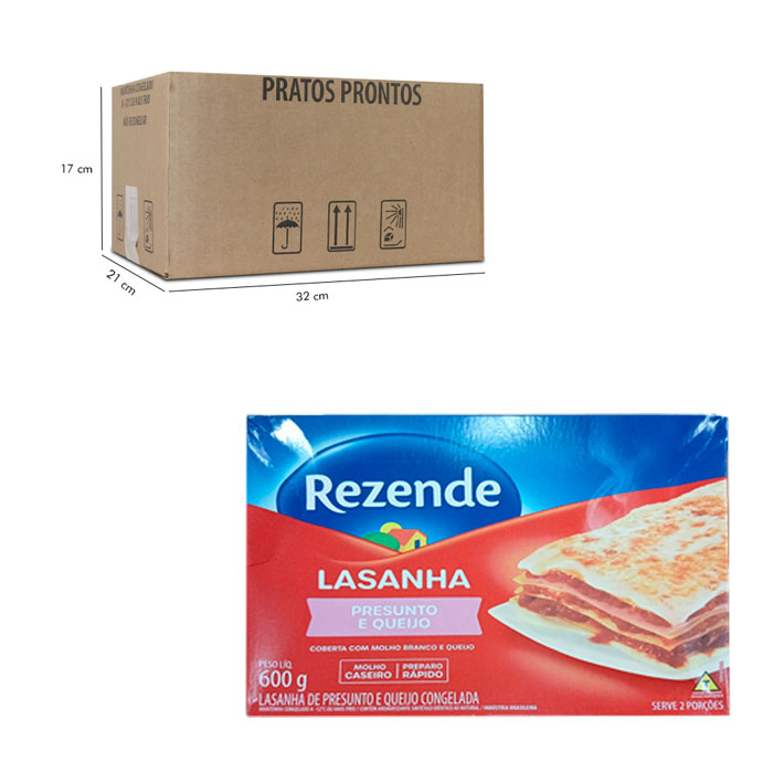 LASANHA PRESUNTO E QUEIJO CONGELADA REZENDE / CAIXA COM 10 CAIXETAS DE 600G CADA