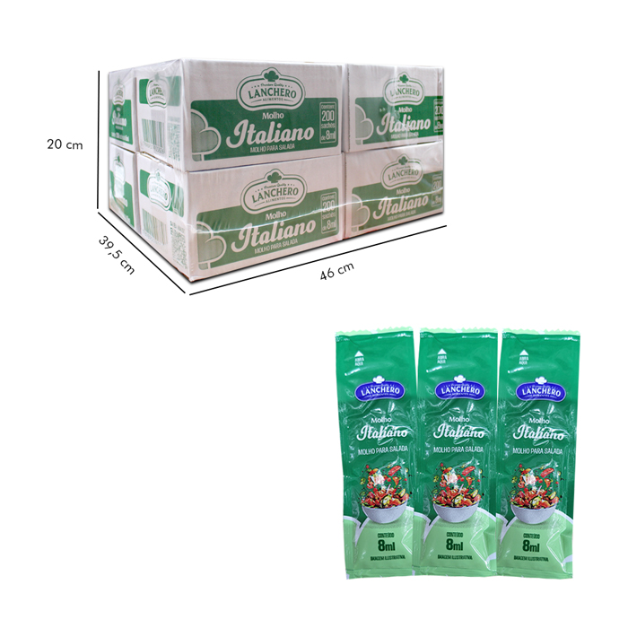 SACHE MOLHO ITALIANO LANCHERO / FARDO DE 8 CAIXAS COM 200 SACHES DE 8G CADA