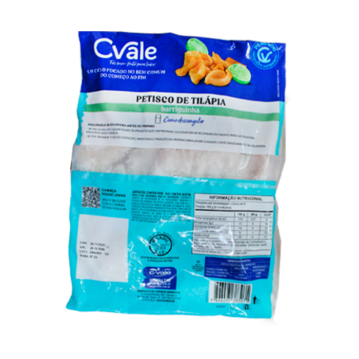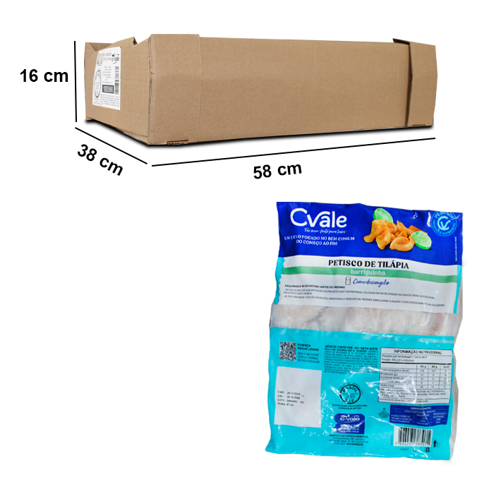 PEIXE ISCA DE TILAPIA (PETISCO) C.VALE / CAIXA COM 20 PT DE 500G CADA