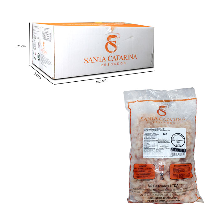 PEIXE CAMARAO VERMELHO DESCASCADO SANTA CATARINA / CAIXA DE 12 KG COM 4 PT DE 3 KG CADA